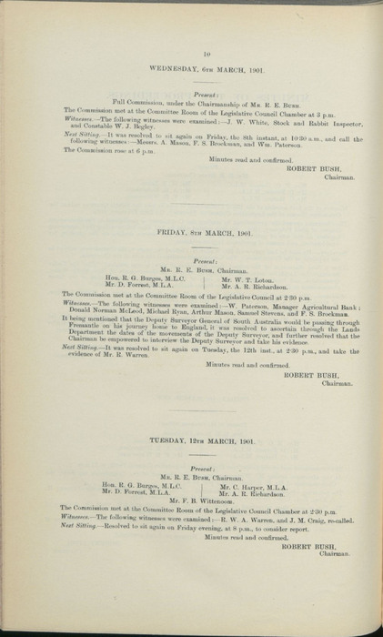 MR. R. E. BUSH, Chairman. Hon. R. G. Burges, M.L.C. | Mr. C. Harper, M.L.A. Mr. D. Forrest, M.L.A. | Mr. A. R. Richardson. Mr. F. B. Wittenoom.